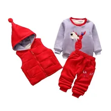Buy Now Fashion Baby Boys Girls Cartoon Deer Clothes Children Add Cotton Hooded Vest T-shirt Pants 3Pcs/Set Autumn Winter Kids Tracksuit before expired and You will save 41% today