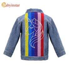 Buy Now Rainbow Embroidery Denim Jacket with Unicorn Girls Jackets Toddler Girls Clothing Kids Fashionable Outwear Kids Coats Girls before expired and You will save 30% today