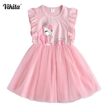 Buy Now VIKITA Girls Dress Flare Sleeve Kids Cartoon Dresses Children Unicorn Vestidos 2019 Girls Dresses Summer Kids Dress For Girls before expired and You will save 42% today