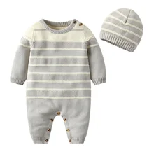 Buy Now Autumn fashion knitted jumpsuit cotton grey sweater 2 sets Hooded ropa de baby Romper newborn Baby boy girls winter clothes before expired and You will save 15% today