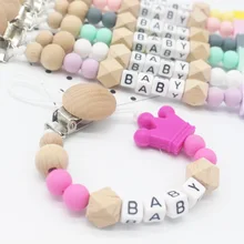 Buy Now Baby Pacifier Pink Crown Silicone Beads Pacifier Holder Chain Shower Gift Personalised Name Handmade Beech Wooden Clip Chain before expired and You will save 39% today
