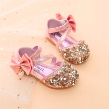 Buy Now Gold Silver Pink summer Children Leather Shoes Casual Girls Princess Flat Heel Party Shoes Fashion Sequins Bow Pearl Kids Shoes before expired and You will save 33% today