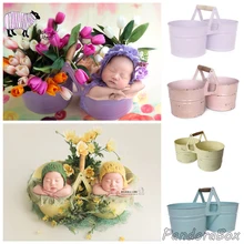 Buy Now Iron Flower Bucket Newborn Photography Props Twins Baby Girl Boy Photoshoot Studio Posing Floral Basket fotografia Accessories before expired and You will save 22% today