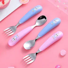 Buy Now New Lovely Bear Print Baby Flatware Spoon Children Stainless Steel Fork Spoon Set Baby Eating Soup Spoon Tableware Spoon Fork before expired and You will save 45% today