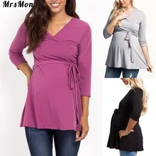 Buy Now Pure spliced V-neck with waistband seven-minute sleeve wrapped Maternity Sweater pull-down nursing suit breastfeeding clothes before expired and You will save 15% today